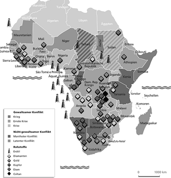 Alles in allem lassen sich ein paar Punkte festhalten. Für die deutsche Afrikapolitik, die von staatlichen Institutionen über Wirtschaftsunternehmen bis zu sogenannten NGOs zahlreiche unterschiedliche Mittel nutzt, sind die afrikanischen Rohstoffe zum Teil durchaus von Bedeutung. Einen Schwerpunkt bilden etwa die Staaten am Golf von Guinea, deren Erdgas das Interesse der deutschen Energiekonzerne weckt. Daneben zielt Berlin darauf ab, seine Beziehungen zu Staaten zu verbessern, denen zugetraut wird, eine Vormachtrolle in Afrika zu übernehmen; Südafrika, aber in geringerem Maße auch Nigeria und Äthiopien werden als »Juniorpartner« aufgebaut.