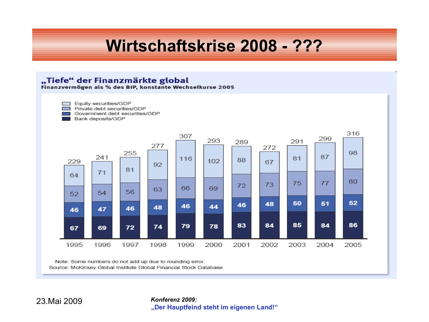 Anders kann es auf Dauer auch nicht funktionieren, und das beweist uns diese Krise erneut. Hier waren also 2005 319%, vom Doppelten hat sich das auf das Dreifache entwickelt. Das Kapital ist stärker gewachsen als die Wirtschaftsleistung und die Profite.