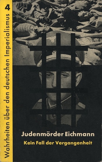 Aus einer Reihe namens »Wahrheiten über den deutschen Imperialismus« beim Dietz Verlag ist mir eine Broschüre Nummer 4 zur Hand und erwähnenswert. Anlässlich der Verhaftung Adolf Eichmanns durch den Mossad und während des Prozesses gegen ihn in Israel erschien 1961 in besagter Reihe »Judenmörder Eichmann – Kein Fall der Vergangenheit« von Heinz Kühnrich, worin sogar aus der Erklärung des Ministerpräsidenten David Ben Gurion vor dem israelischen Parlament, der Knesset, zitiert wird und im ganzen Text kein abfälliges Wort über Israel fällt, hingegen z.B. der für den deutschen Imperialismus überaus peinliche Umstand nächstens beleuchtet wird, dass Adolf Eichmann während des Prozesses drohte, Namen und Viten von in der BRD amtierenden Nazigrößen preiszugeben.