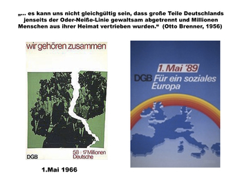 Wie auch immer, der DGB in Westdeutschland entwickelte sich im Lauf der heftigen Auseinandersetzung immer mehr hin zu dem Konzept »Wandel durch Annäherung«. Ich möchte das anhand der Behandlung außenpolitischer Fragen durch die Gewerkschaftsführung zeigen, an drei Landkarten.