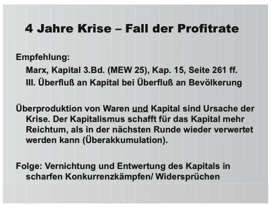 Dann käme ich noch zu einigen Aspekten, was das jetzt für die Entwicklung des Kapitals an sich bewirkt. Es gibt insgesamt einen Fall der Profitrate. Die Tendenz ist dabei langfristig.