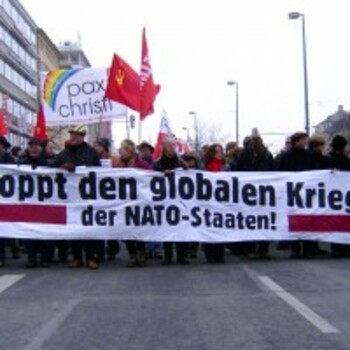 Den Haupteinfluss in der Gewerkschaft hat natürlich die rechte Arbeiteraristokratie, die schon dafür verantwortlich war, die Arbeiter in den 1. Weltkrieg gegen ihre Klassenbrüder in den anderen Ländern zu hetzen. Bis heute kämpfen sie für die Verteidigung des Vaterlandes der Kapitalisten. Heute heißt das, wir müssen wettbewerbsfähig bleiben und deshalb verzichten, wir müssen die Rüstungsindustrie ankurbeln, wir müssen uns mit Kriegsminister und Bundeswehr verständigen etc. Aber gerade da, wo sich Arbeiter mit Recht von dieser Vaterlandsverteidigung abwenden, geraten sie nicht nur in die immer noch zu kleine Protestfront gegen die Kungelei des DGB mit der Bundeswehr. Sondern sie können auch vom rechten Regen in die linke Traufe geraten. Denn gegen den US-Imperialismus marschieren und gar noch kritisieren, dass die europäischen Armeen nicht gegen die USA kämpfen, das ist nun mal auch Vaterlandsverteidigung – wie sie jetzt noch nicht militärisch aktuell ist, aber schon in Reserve für den Ernstfall steht.