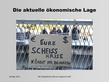 Zum Einstieg: »Eure Scheiß-Krise könnt ihr behalten« ist ein ziemlich hohles Pappschild, weil es genau umgekehrt ist: Die Krise behalten wir solange, wie nichts Gegenteiliges passiert. Wir können die Krise nicht denen wiedergeben, die sie verursacht haben, sondern müssen sie letztendlich selber beseitigen.