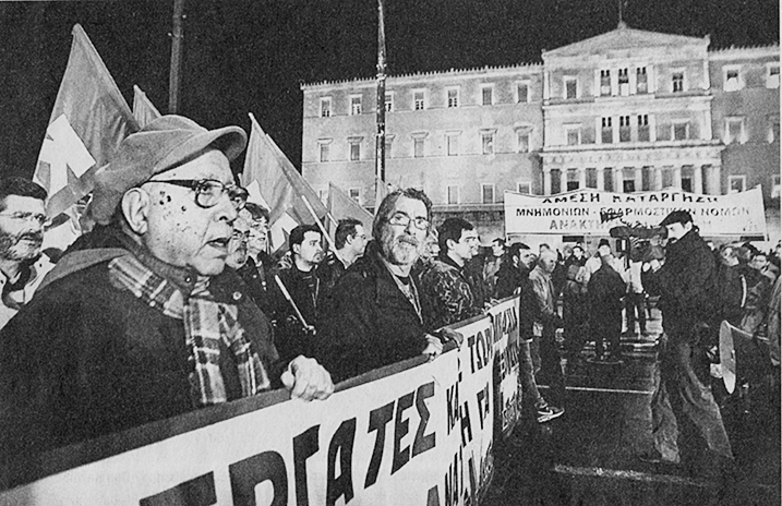 Doch für die Anfang der 80er Jahre erkämpften Verbesserungen, die das Leben etwas erträglicher machten, kämpften die griechischen Arbeiter dann auch hartnäckig in den 90er Jahren, als hierzulande längst mit der Demontage sozialer Errungenschaften bzw. Zugeständnisse der letzten Jahrzehnte begonnen worden war – ohne dass Regierung und Kapital auf nennenswerten Widerstand von Seiten der doch so vaterlandstreu geführten Gewerkschaften gestoßen wären.