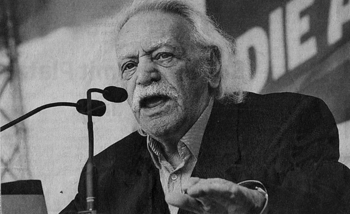 Manolis Glezos. Er war ganz vorn im Widerstandskampf gegen die deutsche Besatzung im 2. Weltkrieg, danach im Kampf um die Befreiung von jeglicher imperialistischer Bedrückung, 1967 bis 1974 im Widerstand gegen die Militärdiktatur, jetzt im Widerstand gegen das deutsch-europäische Diktat. Deutschland soll seine Schulden an Griechenland zahlen (Reparationen und Zwangsanleihe im 2. Weltkrieg) – mahnende Worte spricht er am 1. Mai 2015 in Hamburg.