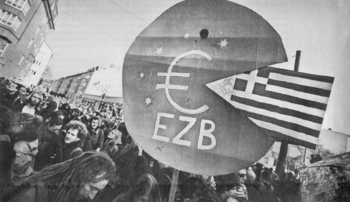 – Und daraus ergibt sich die Frage: Ist der griechische Staat ein zwar schwacher, aber doch imperialistischer Staat innerhalb einer imperialistischen EU oder muss man nicht vielmehr auch in der EU unterscheiden zwischen imperialistischen und von diesen abhängigen Staaten? Und danach fragen, welche Rolle der deutsche Imperialismus dabei spielt?