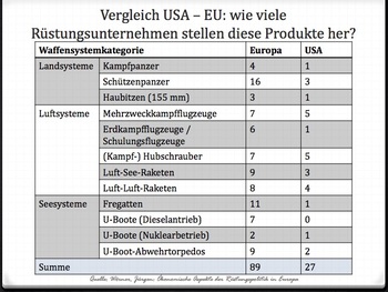 Ein weiteres Problem der deutschen Rüstungsproduktion ist eins für das angestrebte Deutsch-Europa. Der Vergleich zu den USA sieht nicht günstig aus. Die berüchtigte Firma McKinsey wurde mit einer Untersuchung beauftragt und fand heraus: