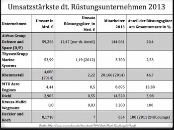 Da ist erstmal wichtig, sich klarzumachen, dass die Produktion von Waffen wie die Produktion aller anderen Güter sich mit dem Fortschritt der Produktivkräfte sehr verändert hat. Eine reine Rüstungsindustrie ist tatsächlich immer weniger möglich, in vielen als zivile Produktion geltenden Bereichen werden Rüstungsgüter produziert. Wenn ihr euch die größten Monopole in Deutschland anseht, werdet ihr keinen Zweifel haben, dass sich deren Produktionsstätten in kürzester Zeit auf reine Kriegsproduktion umstellen lassen. Bei VW hat man darin schon Übung, es war auch unter den Hitlerfaschisten überhaupt kein Problem, vom Kraft-durch-Freude-Wagen für angeblich alle Arbeiter auf den Kübelwagen für die Wehrmacht umzustellen.
