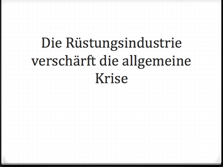 Außer dem Fortschritt der Produktivkräfte und dem Problem der Kleinteiligkeit der europäischen Waffenproduktion gibt es mit der Rüstungsproduktion noch ein weiteres Problem für jedes imperialistische Land und damit auch für den deutschen Imperialismus. Die Rüstungsproduktion trägt zur Verschärfung der allgemeinen Krise des Kapitalismus bei. Das hat im wesentlichen zwei Gründe.