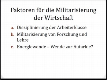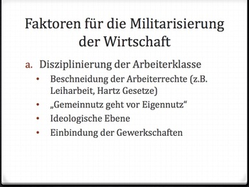 Wenn wir die gesamte Gesellschaft betrachten, gibt es natürlich noch viel mehr Bereiche, die militarisiert werden, politische, kulturelle, usw., aber in diesem Referat wollen wir uns tatsächlich nur auf die Wirtschaft beschränken.