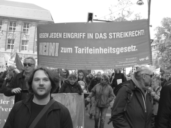 Hierbei steht jedenfalls fest: Der „Wirtschaft“ zum Erfolg verhelfen, heißt sich selber Handschellen anlegen und dem Kapital helfen, seine Macht über uns zu vergrößern und dafür gegebenenfalls im Sinne des Wortes im „Gleichschritt mitzumarschieren“. Das kommt einer Selbstaufgabe des Gewerkschaftszwecks und der gewerkschaftlichen Aufgaben zur Vertretung der Interessen der Lohnabhängigen gleich. Die Gewerkschaften wurden nicht gegründet, um Kapitalinteressen zu vertreten, sondern, um uns vor der Willkür und den Angriffen des Kapitals auf unsere Arbeits- und Lebensbedingungen, auf Löhne usw. zu schützen.